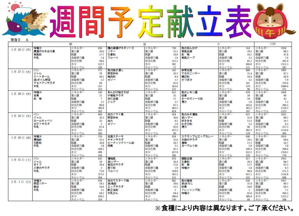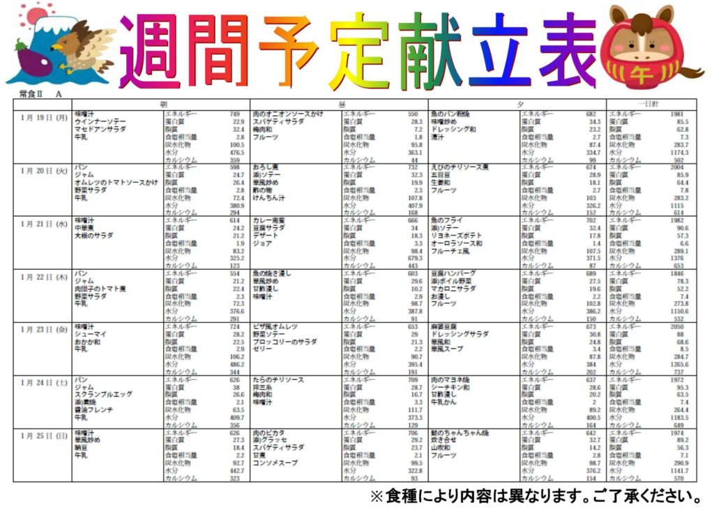 当院では常食、軟食を召し上がっている患者さんを対象に、毎週金・土・日曜日の昼食にA・Bランチの2種類の献立よりいずれかを選択することができます。食事が楽しみと思っていただける工夫として、新しいメニューを日々、取り入れています。